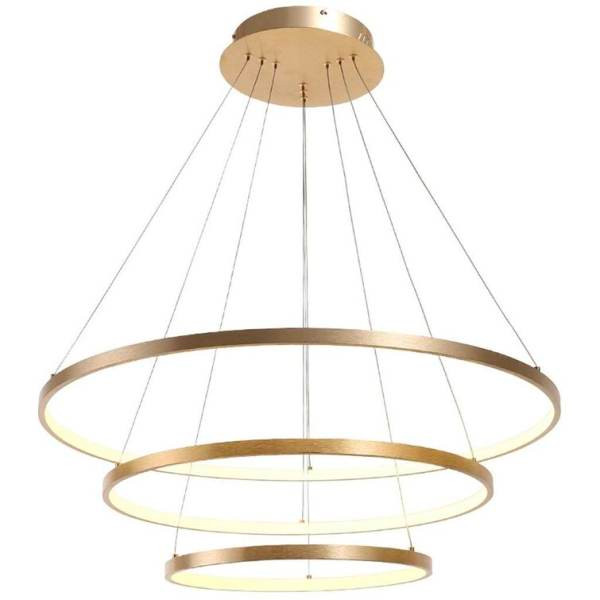این مدل لوستر 3 حلقه ، با قطر70_50_35 می باشد. که با رنگ بدنه طلایی ارائه می شود ، ودر سه رنگ رنگ نور آفتابی ، مهتابی ، و هم زمان هر دو (چند رنگ) قابل انتخاب می باشد. ارتفاع لوستر از20 تا 80 سانت قابل تغییر است ، همچنین میتوانید چیدمان لوستر را از طبقاتی به کهکشانی یا برعکس تغییر بدهید.