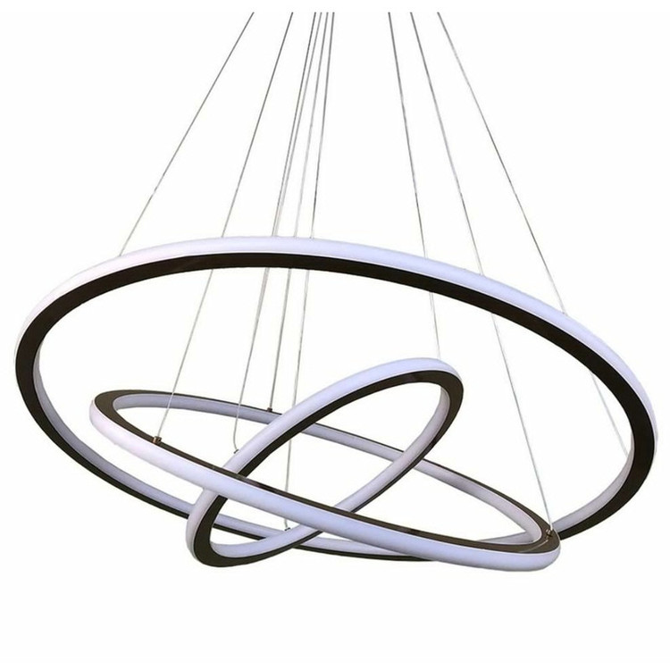 این مدل لوستر سه حلقه ،با قطرهای30-50-70 می باشد که از دو طرف حلقه ها پخش نور دارد ،که با بدنه مشکی ارائه شده ، و در سه رنگ نور ،آفتابی و مهتابی و همزمان هردو (چند رنگ ) قابل انتخاب می باشد. ارتفاع لوستر از 20 سانت تا 80 سانت قابل تغییر است ،همچنین می توانید چیدمان لوستر را ، به طبقاتی یا کهکشانی تغییر دهید. با ریموت و اپلیکیشن موبایل میتوان نور لوستر را کم و زیاد کرد، تنظیم طیف نوری انجام دهید و همچنین دکمه حالت شب از امکانات ریموت می باشد