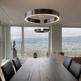 لوستر مدرن امیران لایتینگ با قطر 60 سانتیمتر با رنگ بدنه مشکی مات استاتیک ، دارای ریموت و قابلیت نصب اپلیکیشن موبایل android و ios و قابلیت تنظیم ارتفاع از 100سانتی متر تا 15 سانتی متر و دارای سه طیف نوری آفتابی ، مهتابی و نچرال