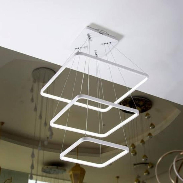 لوستر سح حلقه مربع به ابعاد -40-25-60 سانتیمتر ،رنگ بدنه سفید استاتیک ،در سه نوع (آفتابی ،مهتابی و چند رنگ) ارائه میشود ،از امکانات ریموت می توان کم و زیاد کردن نور ،حالت شب ،اپلیکیشن موبایل(کم و زیاد کردن نور ،تغییر طیف نوری ،تنظیم زمان برای خاموش یا روشن شدن ) ارائه میشود