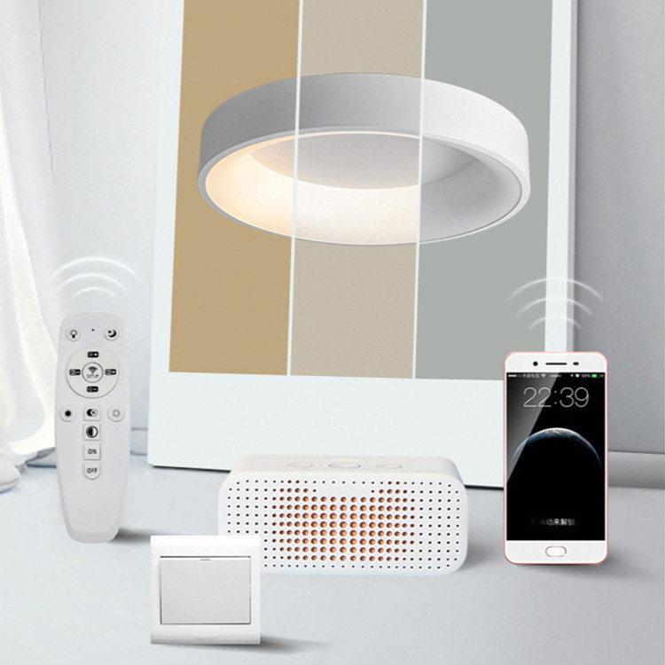 آویز مدرن سقفی به قطر 60 سانتیمتر ،که با بدنه سفید ارائه شده ،نور (چند رنگ ) قابل انتخاب می باشد. با ریموت و اپلیکیشن موبایل میتوان نور را به آفتابی ،مهتابی و نچرال تغییر داد ،نور را کم وزیاد، و خاموش و روشن ، و یا به حالت شب تغییر بدهید .