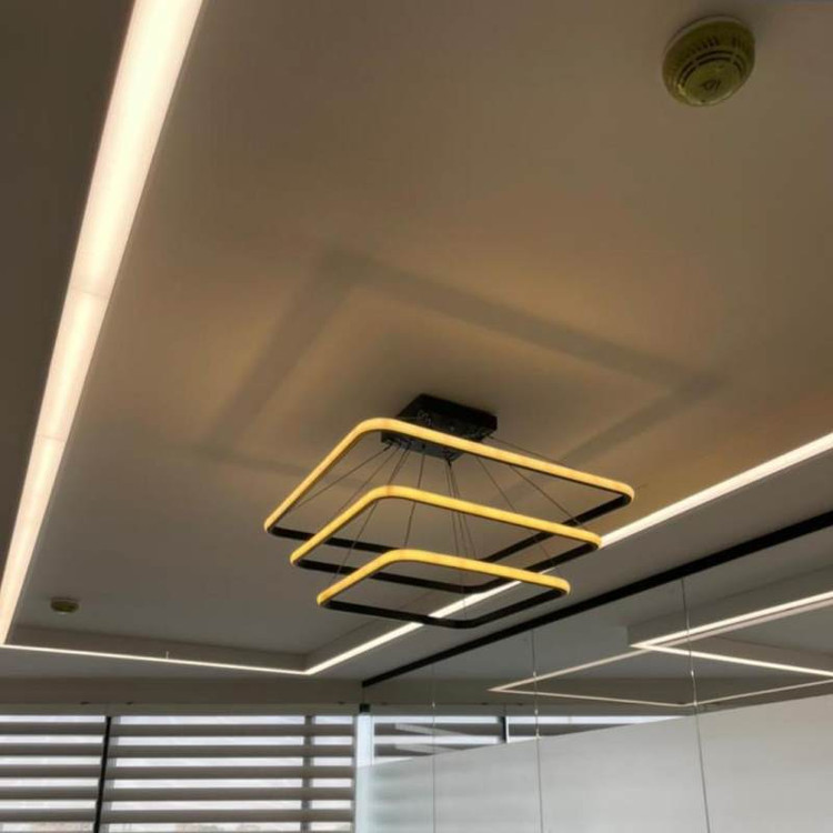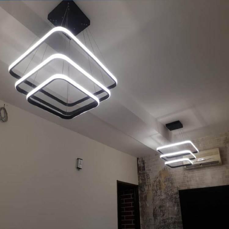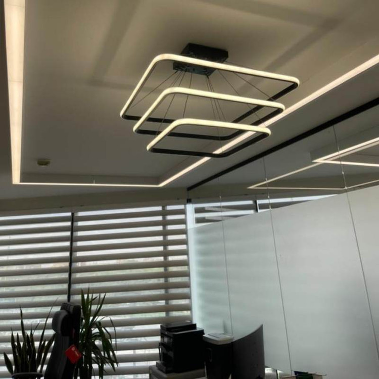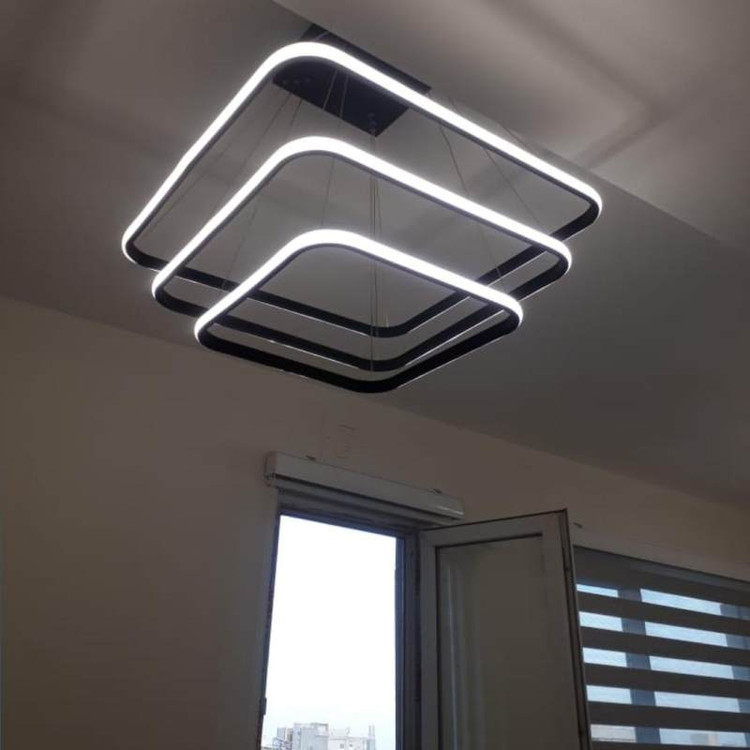 لوستر سه حلقه نور به بیرون به ابعاد 40-50-60 سانتیمتر ،رنگ بدنه مشکی استاتیک ،در سه نوع (آفتابی ،مهتابی و چند رنگ) ارائه میشود ،از امکانات ریموت می توان کم و زیاد کردن نور ،حالت شب ،اپلیکیشن موبایل(کم و زیاد کردن نور ،تغییر طیف نوری ،تنظیم زمان برای خاموش یا روشن شدن ) ارائه میشود.
