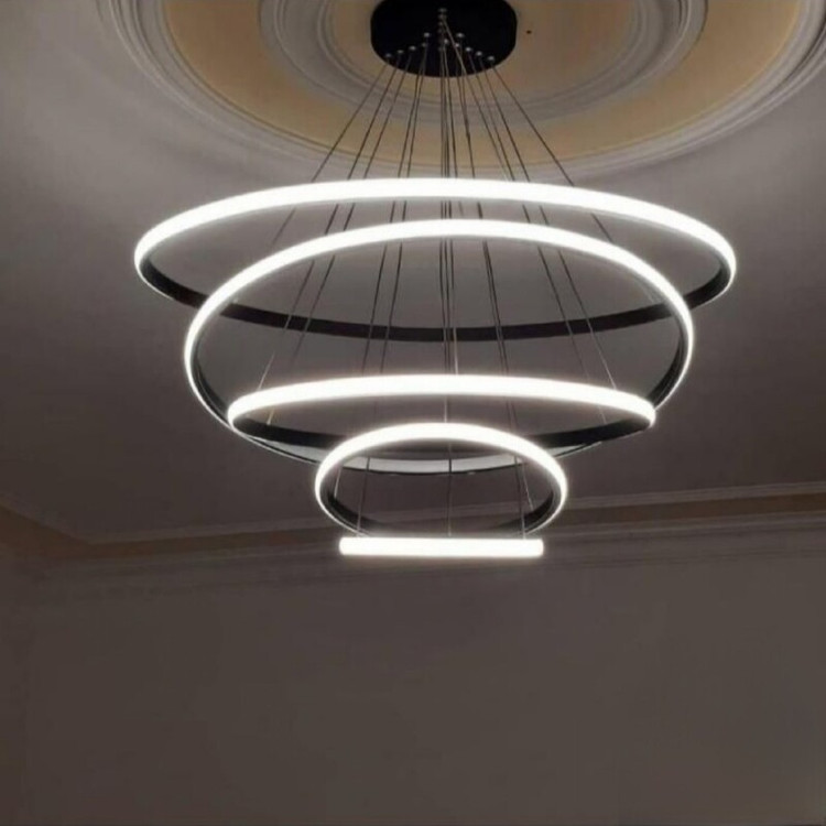️✔️ تولید کننده انواع لوسترها و آویزهای مدرن (فروش بدون واسطه و کمترین سود) ⬜️ پخش به صورت عمده و تکی ⚫️ به همراه ریموت کنترل دیمردار ⚪️ چهار حالت نوری آفتابی، مهتابی، یخی و شب خواب ⚫️ دارای گارانتی و خدمات پس از فروش ⚪️ قابلیت اتصال به نرم افزار موبایل (android/IOS) ⚫️ مناسب برای فضای 30متری ⚪️ قابلیت تنظیم ارتفاع از ۳۰ تا ۱۰۰ سانتی متر قطر حلقه ها ۲۰-۳۰ـ۴۰ـ۵۰ـ۶۰ میباشد