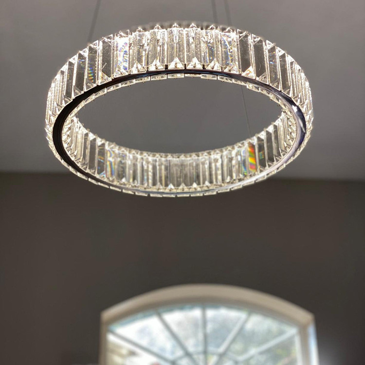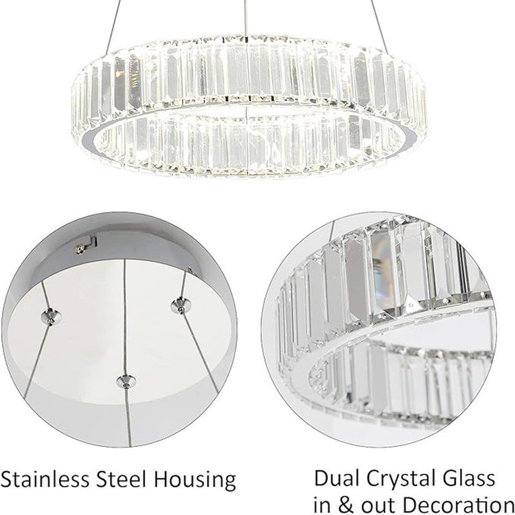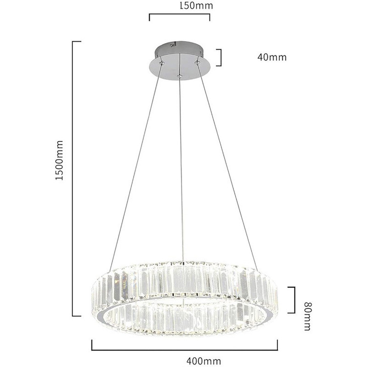 محصول فوق تشکیل شده از بدنه استیل و کریستال کاردی با قطر 40 سانتیمتر وارتفاع8 سانتیمتر،و ارتفاع قابل تنظیم لوستر ،با نور سه حالته (آفتابی ،مهتابی وهردو ) با ریموت قابل تغییر می باشد.همچنین قابلیت کنترل با ریموت و اپلیکشن موبایل (اندروید و ios) را دارد.