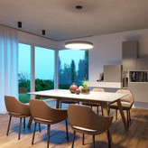 آویز مدرن دایره به قطر 60 سانتیمتر ،که با بدنه مشکی ارائه شده ،نور (چند رنگ ) قابل انتخاب می باشد. با ریموت و اپلیکیشن موبایل میتوان نور را به آفتابی ،مهتابی و نچرال تغییر داد ،نور را کم وزیاد، و خاموش و روشن ، و یا به حالت شب تغییر بدهید .