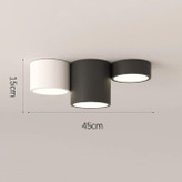 چراغ سقفی مدرن استوانه ،که با رنگ بدنه مشکی و سفید ترکیب شده ارائه شده ،نور سه حالته (آفتابی ،مهتابی وهردو ) با کلید قابل تغییر می باشد.نوع لامپ های بکار رفته در این چراغ ،اس ام دی (SMD ) با توان 40 وات می باشد.