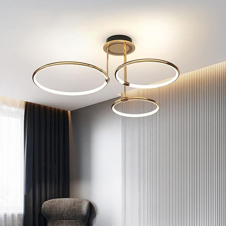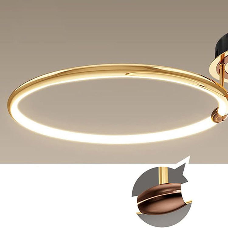 لوستر سه حلقه سقفی به ابعاد 40-50-60 سانتیمتر ،رنگ بدنه طلایی آبکاری ،در سه نوع (آفتابی ،مهتابی و چند رنگ) ارائه میشود ،از امکانات ریموت می توان کم و زیاد کردن نور ،حالت شب ، اپلیکیشن موبایل (کم و زیاد کردن نور ،تغییر طیف نوری ،تنظیم زمان برای خاموش یا روشن شدن ) ارائه میشود.
