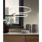 لوستر دو حلقه دایره به ابعاد 35-50 سانتیمتر ،رنگ بدنه نقره ای(سیلور) استاتیک ،در سه نوع (آفتابی ،مهتابی و چند رنگ) ارائه میشود ،از امکانات ریموت می توان کم و زیاد کردن نور ،حالت شب ،اپلیکیشن موبایل(کم و زیاد کردن نور ،تغییر طیف نوری ،تنظیم زمان برای خاموش یا روشن شدن ) ارائه میشود
