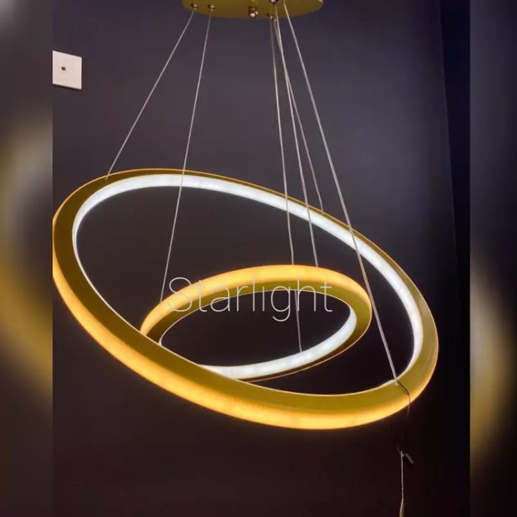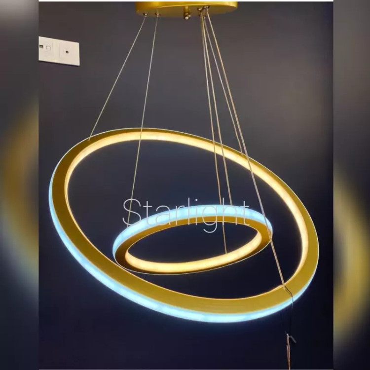 این لوستر از دو حلقه به قطرهای 50 و 30 سانتی متر تشکیل شده است. - موجود در رنگ طلایی، دارای چهار حالت آفتابی ، مهتابی، نچرال و حالت شب - قابل کنترل با ریموت کنترل و اپ موبایل - نور این لوستر هم رو به بیرون و هم رو به داخل می باشد. - آلومینیوم به کار رفته فابریک میباشد که در انتقال حرارت و در نتیجه عمر کار تاثیر زیادی دارد. - این محصول به طور مستقیم و بدون واسطه با بالاترین کیفیت و نازل ترین قیمت از تولیدی به دست شما میرسد. - ارتفاع این لوستر از 30 سانتی متر تا 1 متر قابل تنظیم است و با تغییر ارتفاع میتوان طرح های مختلفی ساخت. - ریموت کنترل به همراه محصول ارسال میشود. - دارای گارانتی و خدمات پس از فروش