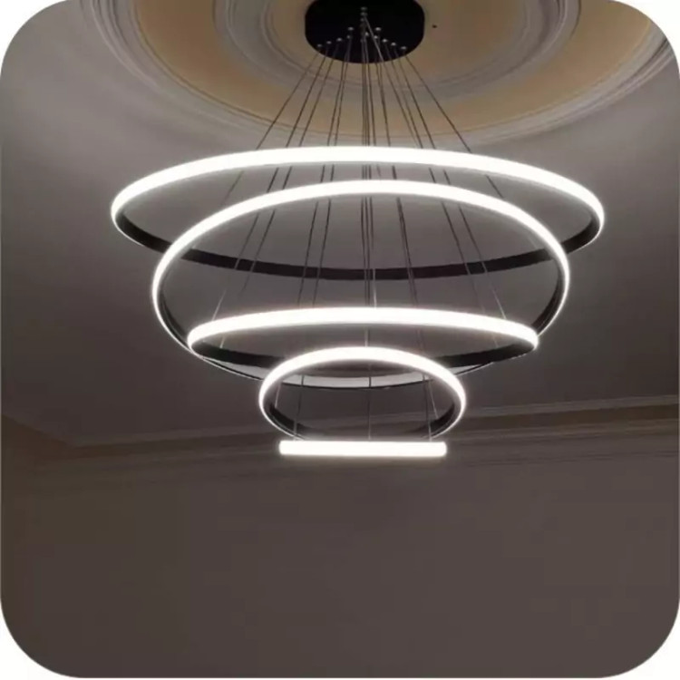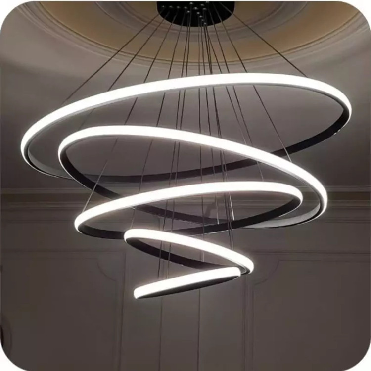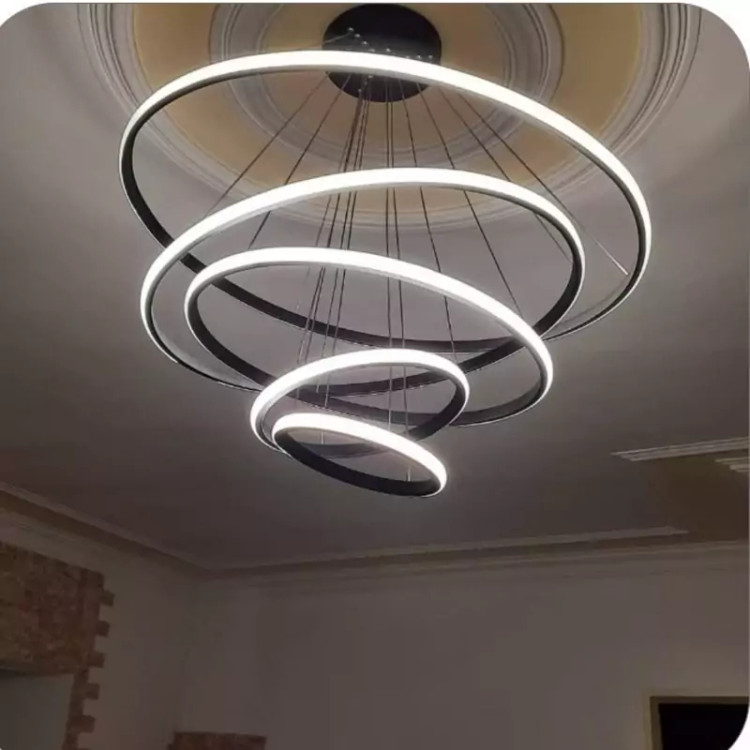 لوستر مدرن 5 حلقه تشکیل شده از 5 حلقه به قطرهای 60،50،40،30،20 می باشد. - موجود در رنگ مشکی دارای چهار حالت آفتابی ، مهتابی، نچرال و حالت شب - قابل کنترل با ریموت کنترل و اپ موبایل - نور این لوستر رو به بیرون است که بر خلاف نور داخل، پخش نور بالایی دارد. - آلومینیوم به کار رفته فابریک میباشد که در انتقال حرارت و در نتیجه عمر کار تاثیر زیادی دارد. - این محصول به طور مستقیم و بدون واسطه با بالاترین کیفیت و نازل ترین قیمت از تولیدی به دست شما میرسد. _مناسب برای فضای 30 متر - ارتفاع این لوستر از 30 سانتی متر تا 1 متر قابل تنظیم است و با تغییر ارتفاع میتوان طرح های مختلفی ساخت. - ریموت کنترل به همراه محصول ارسال میشود. - دارای گارانتی و خدمات پس از فروش
