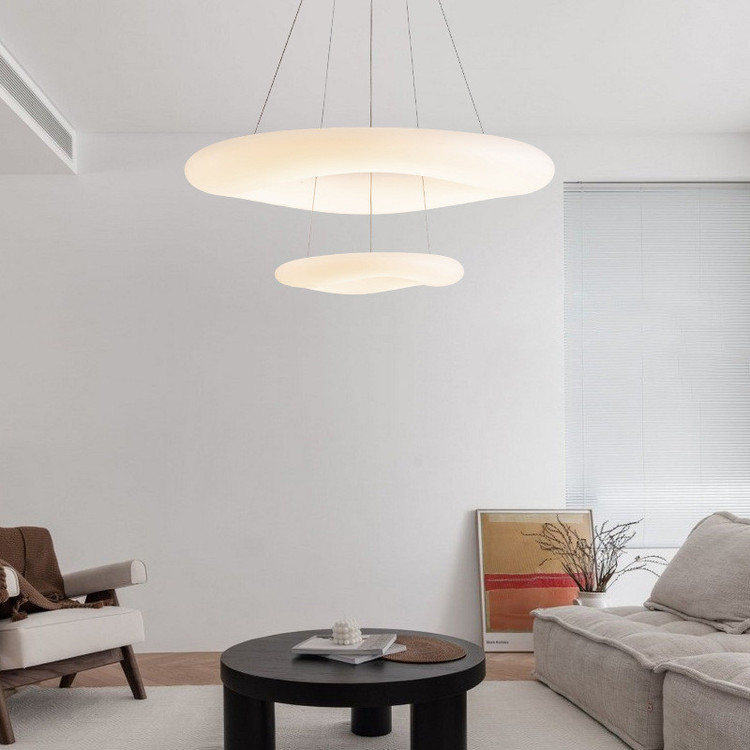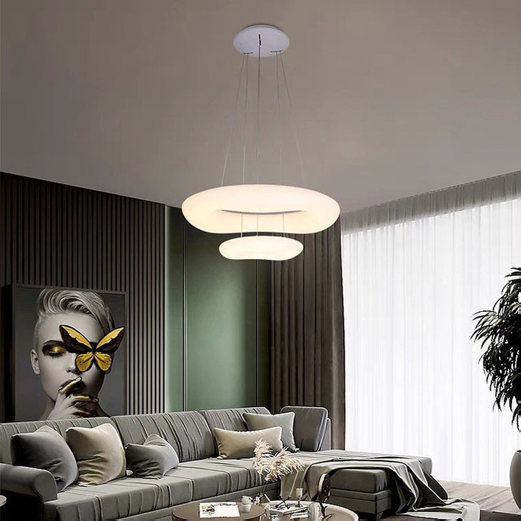 آویز مدرن دو حلقه به قطر 30-60 سانتیمتر ،که با بدنه پلی کربنات ارائه شده ،نور (چند رنگ ) قابل انتخاب می باشد. با ریموت و اپلیکیشن موبایل میتوان نور را به آفتابی ،مهتابی و نچرال تغییر داد ،نور را کم وزیاد، و خاموش و روشن ، و یا به حالت شب تغییر بدهید .