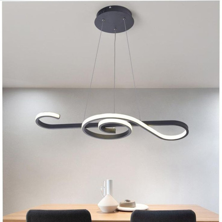 ایبن لوستر ،مدل Note که مناسبه میز کانتر میز آشپزخانه میز ناهار خوری میز کار جزیره و غیره .. که با بدنه مشکی ارائه شده ، و در سه رنگ نور ،آفتابی و مهتابی و همزمان هردو (چند رنگ ) قابل انتخاب می باشد. ارتفاع لوستر از 20 سانت تا 80 سانت قابل تغییر است ، با ریموت و اپلیکیشن موبایل میتوان نور لوستر را کم و زیاد کرد، تنظیم طیف نوری انجام دهید و همچنین دکمه حالت شب از امکانات ریموت می باشد