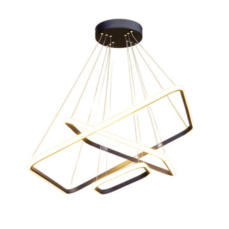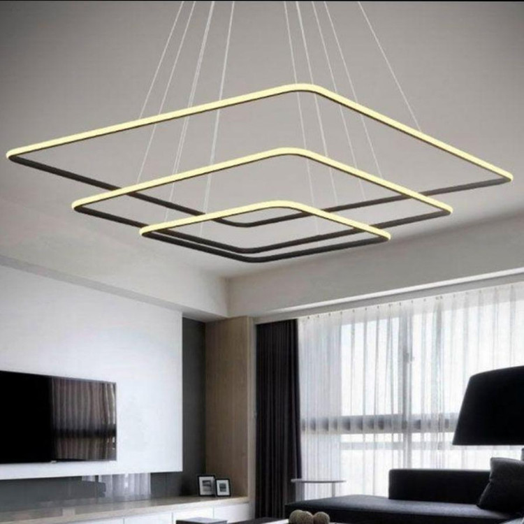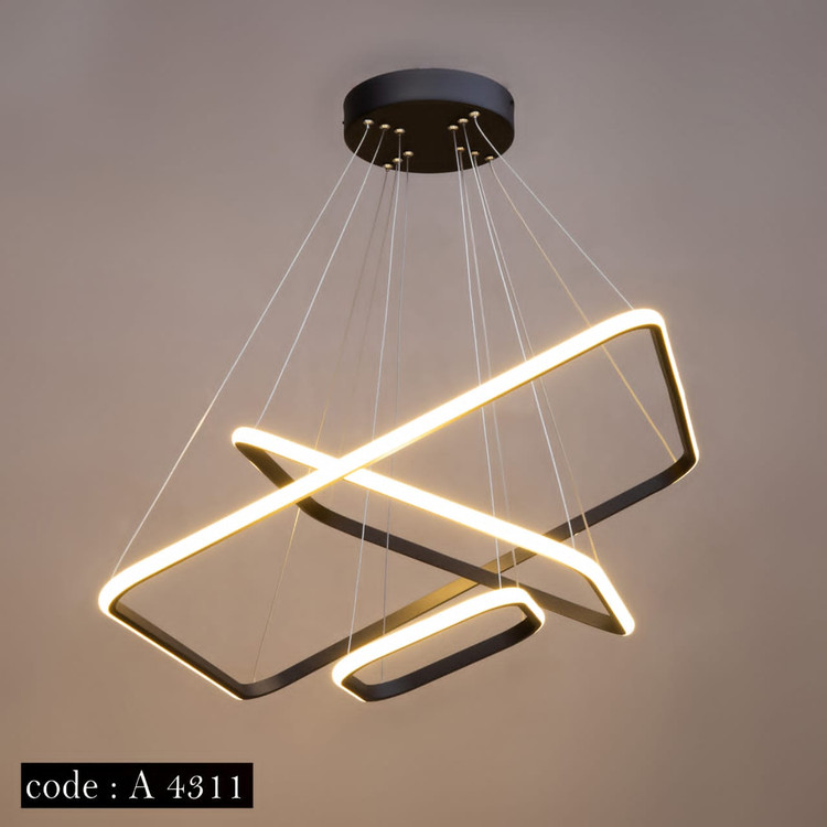 لوستر سه حلقه مربع نور از بیرون به ابعاد ۳۰_۴۰_۵۰ سانتیمتر ، در مدل ریموت دار دارای ریموت کنترل است و از امکانات ریموت میتوان به کم و زیاد کردن نور ،حالت شب و خاموش روشن کردن نور واپلیکیشن موبایل اشاره کرد همچنین شما میتوانید ارتفاع لوستر یا چیدمان شعله ها را تغییر بدهید.