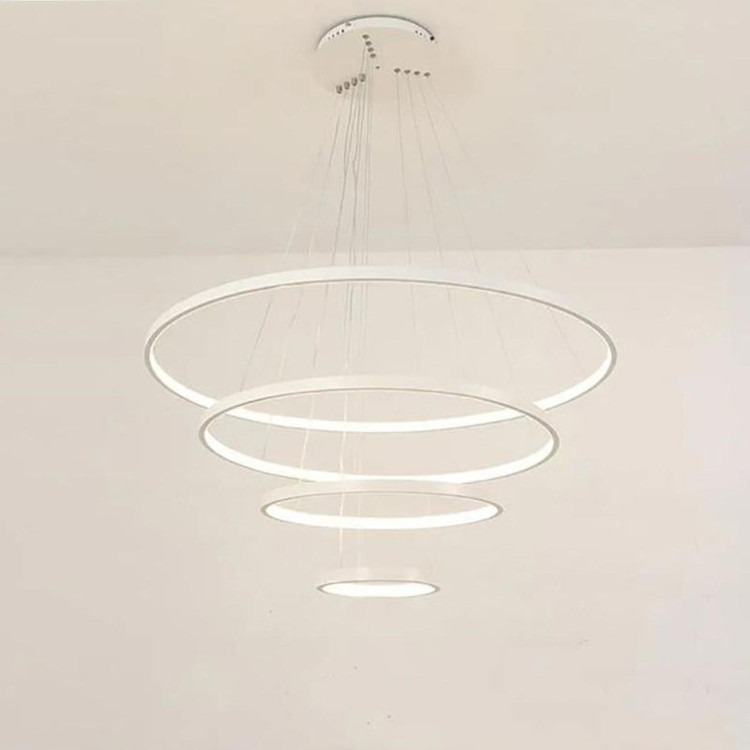 این مدل لوستر چهار حلقه ،با قطرهای 35-50-70-90 می باشد ،که با بدنه سفید ارائه شده ، و در سه رنگ نور ،آفتابی و مهتابی و همزمان هردو (چند رنگ ) قابل انتخاب می باشد. ارتفاع لوستر از 20 سانت تا 80 سانت قابل تغییر است ،همچنین می توانید چیدمان لوستر را ، به طبقاتی یا کهکشانی تغییر دهید. با ریموت و اپلیکیشن موبایل میتوان نور لوستر را کم و زیاد کرد ،طبقات را خاموش و روشن کرد ،و همچنین دکمه حالت شب از امکانات ریموت می باشد.و همچنین تغییر رنگ نور در مدل چندرنگ .